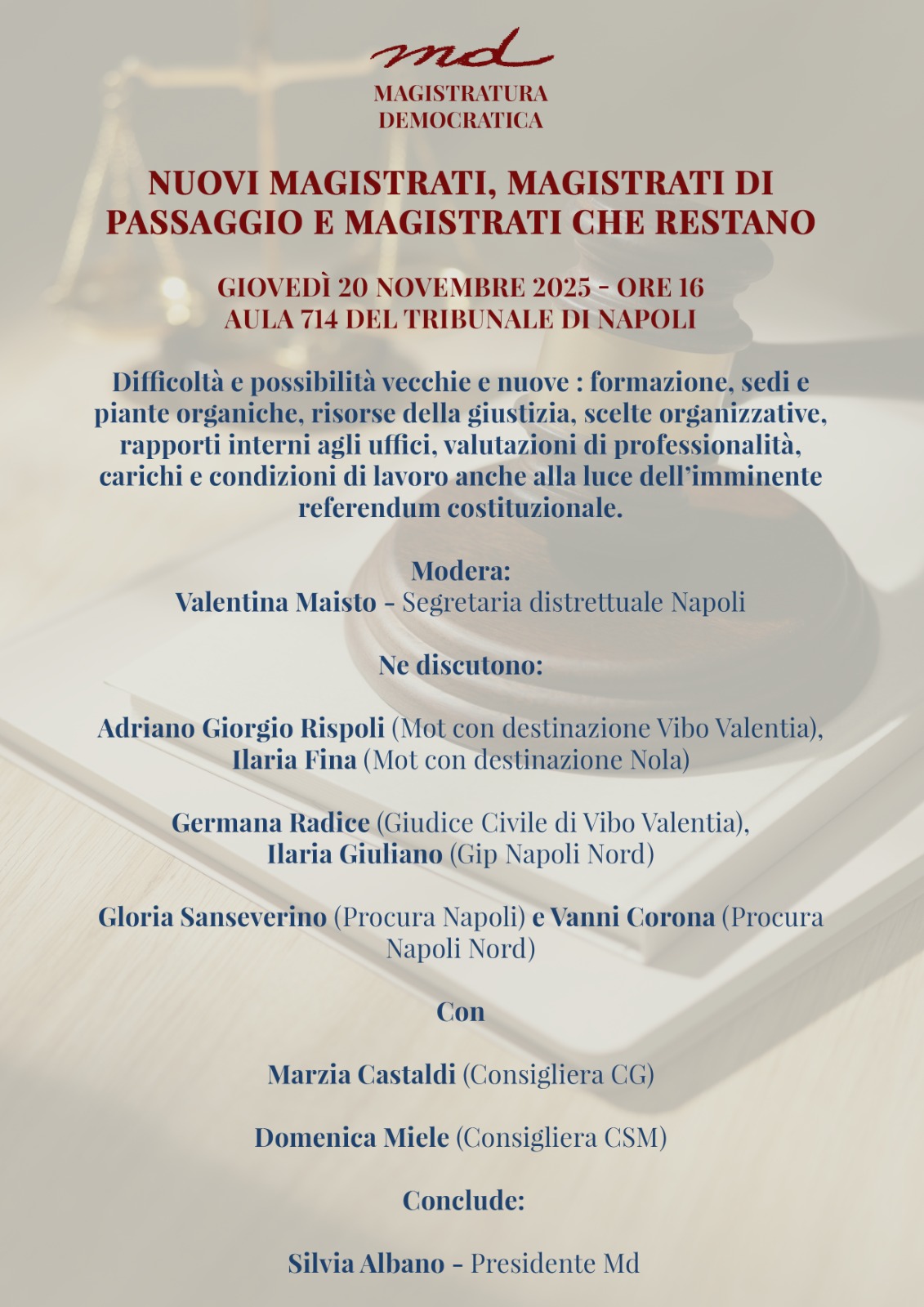 Giovedì 20 novembre 2025, ore 16 Aula 714 del Tribunale di Napoli